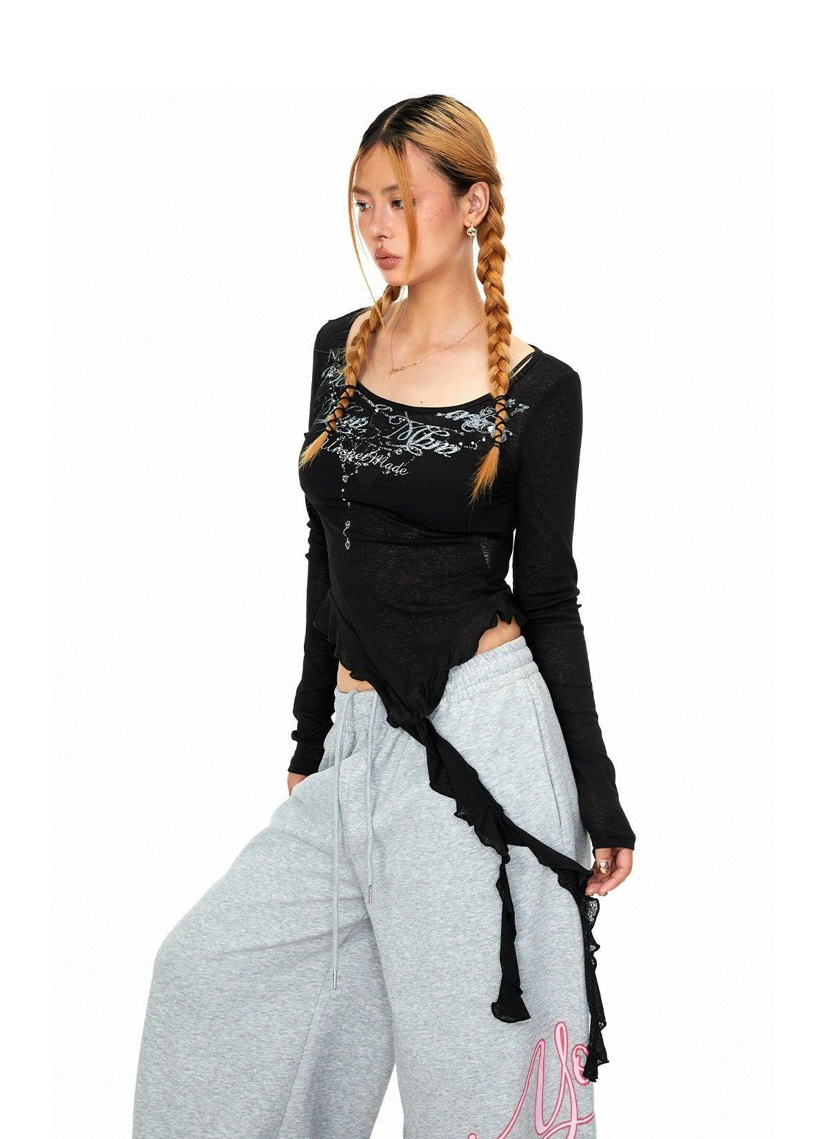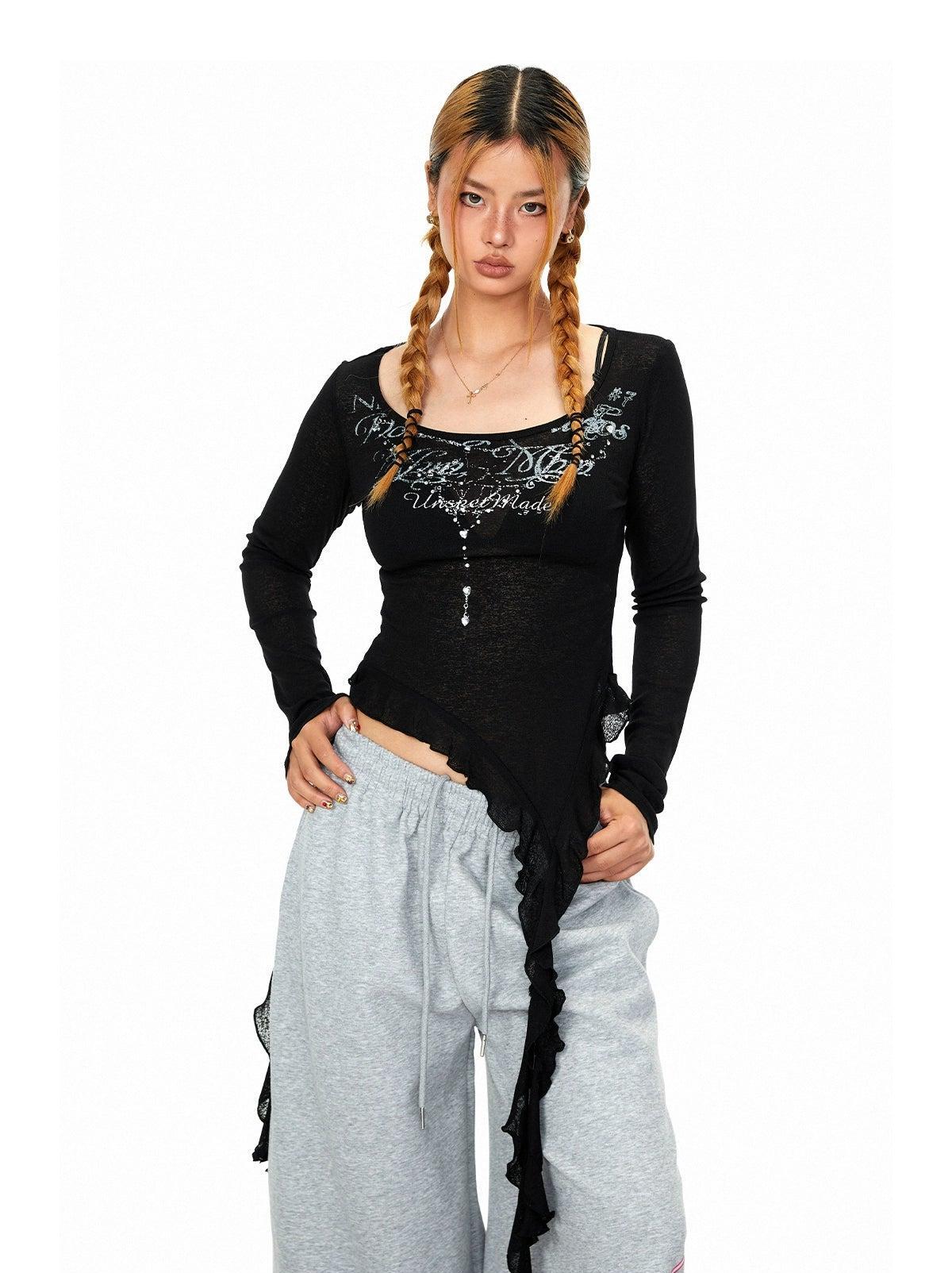 BB Extended Ruffle Printed Blouse