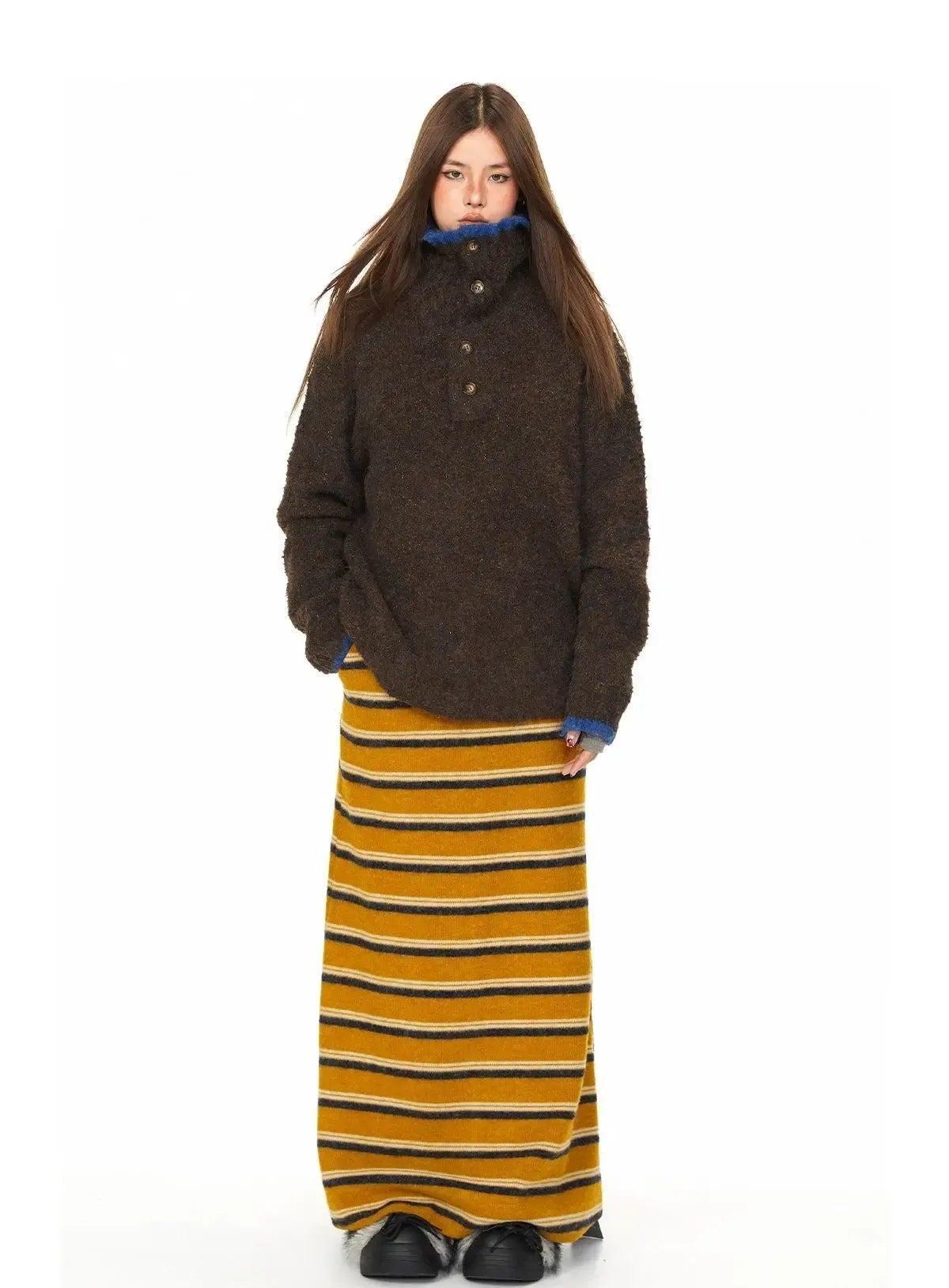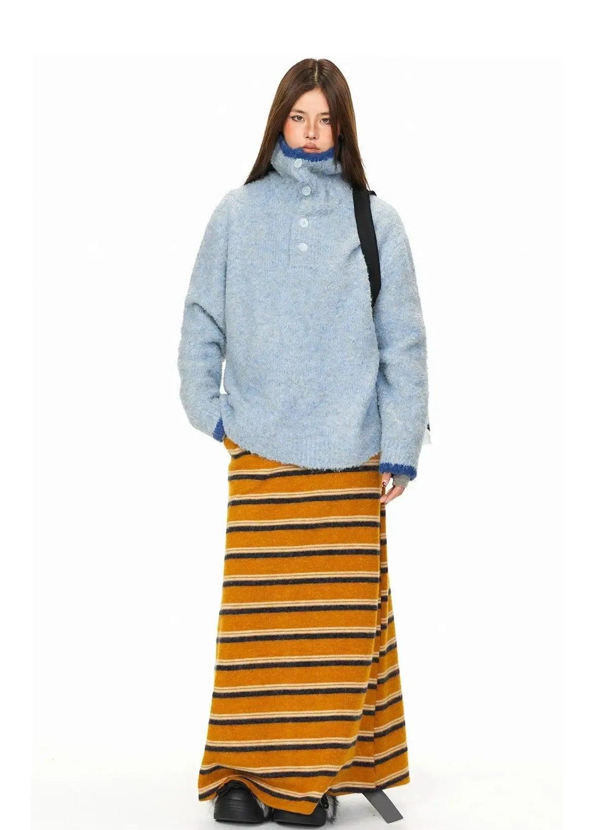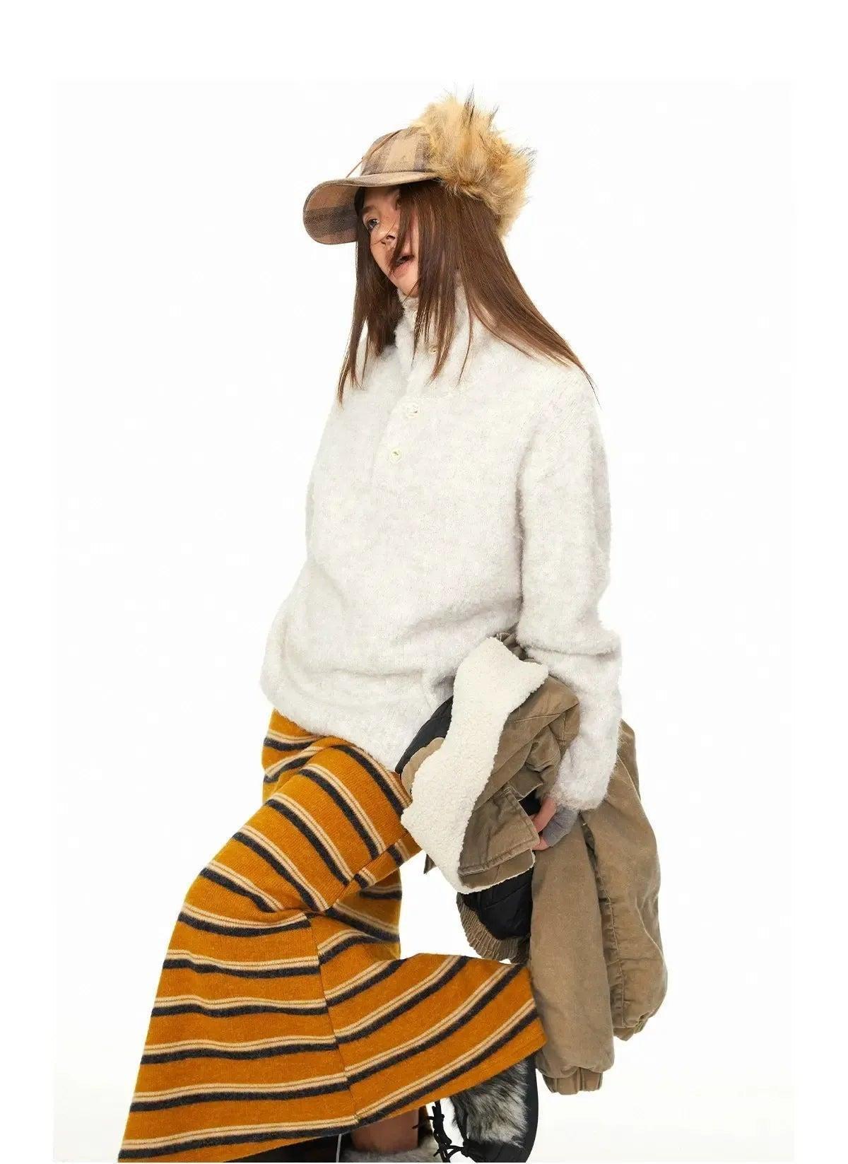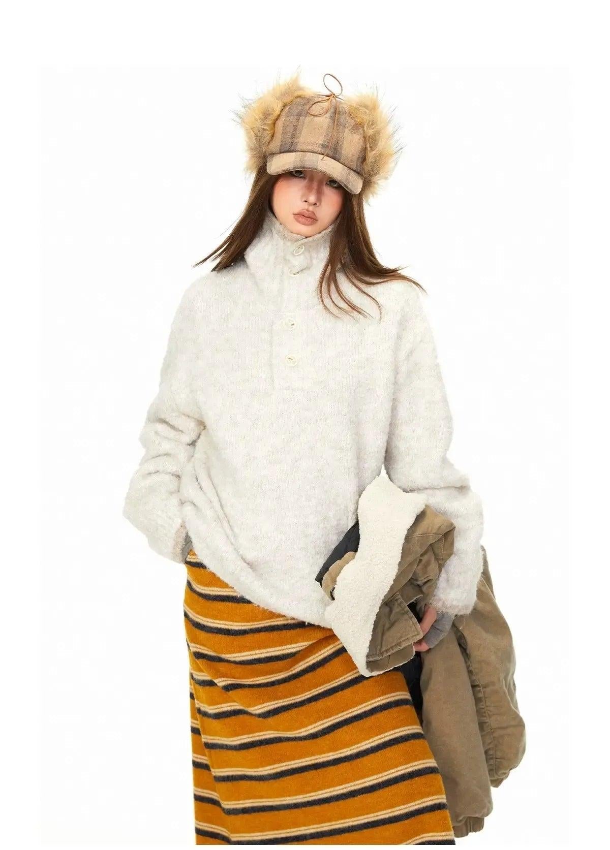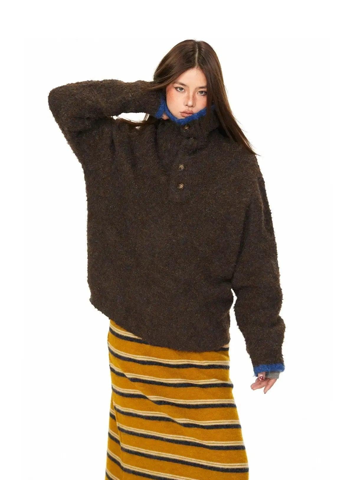 BB Fuzzy Funnel Neck Half-Button Sweater