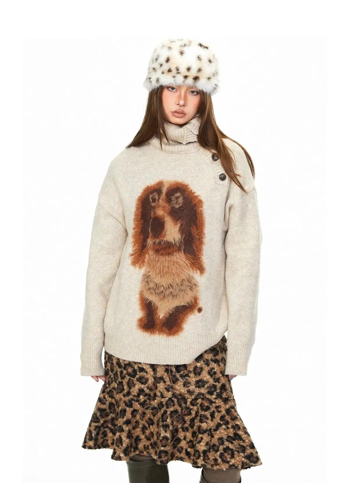 BB Dog Graphic Turtleneck Sweater