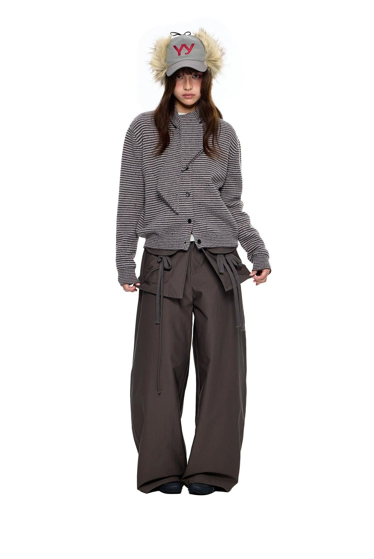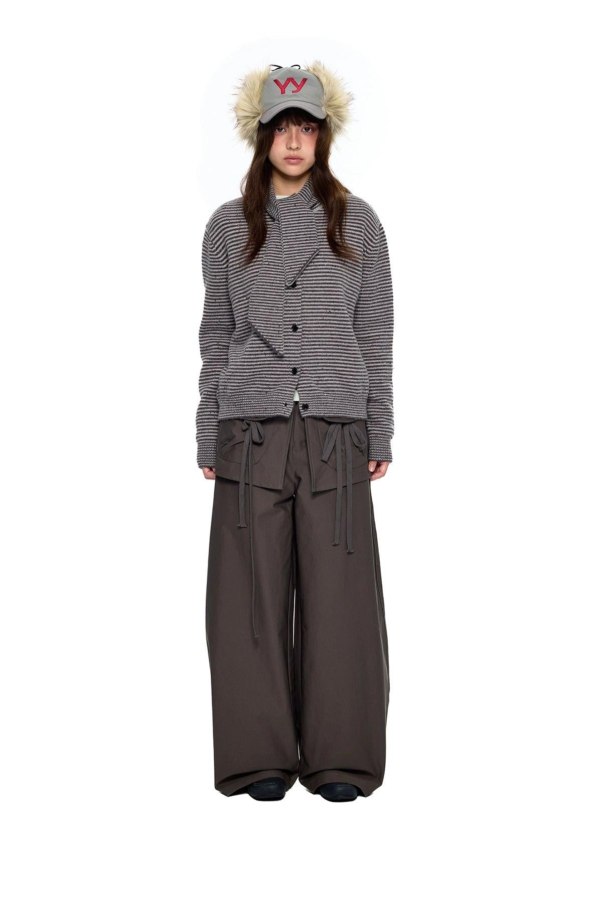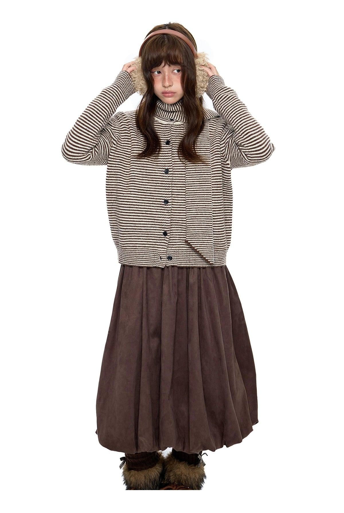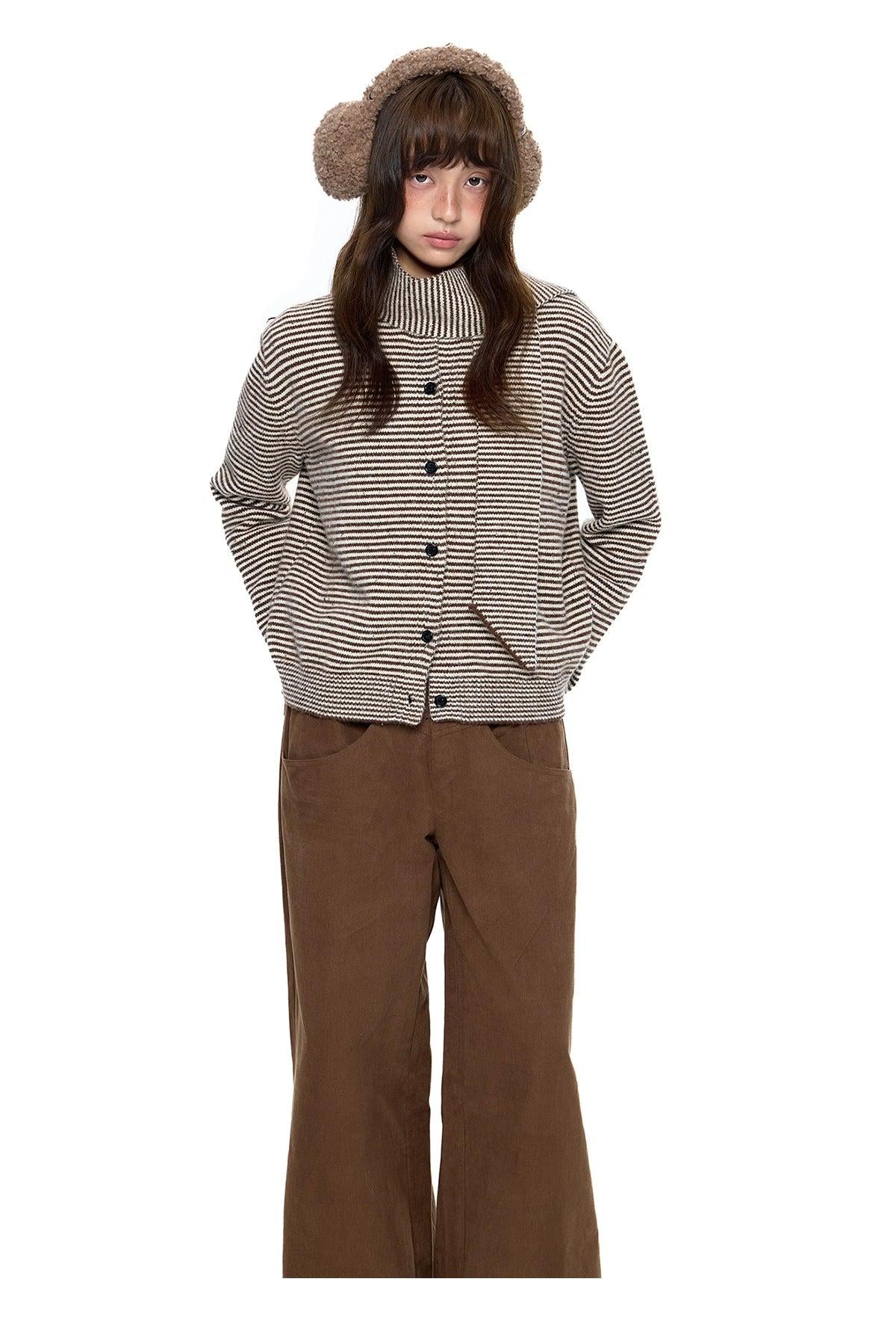 Tom Buttoned Striped Scarf Knit Jacket