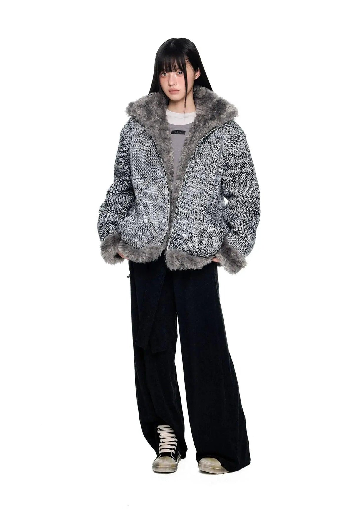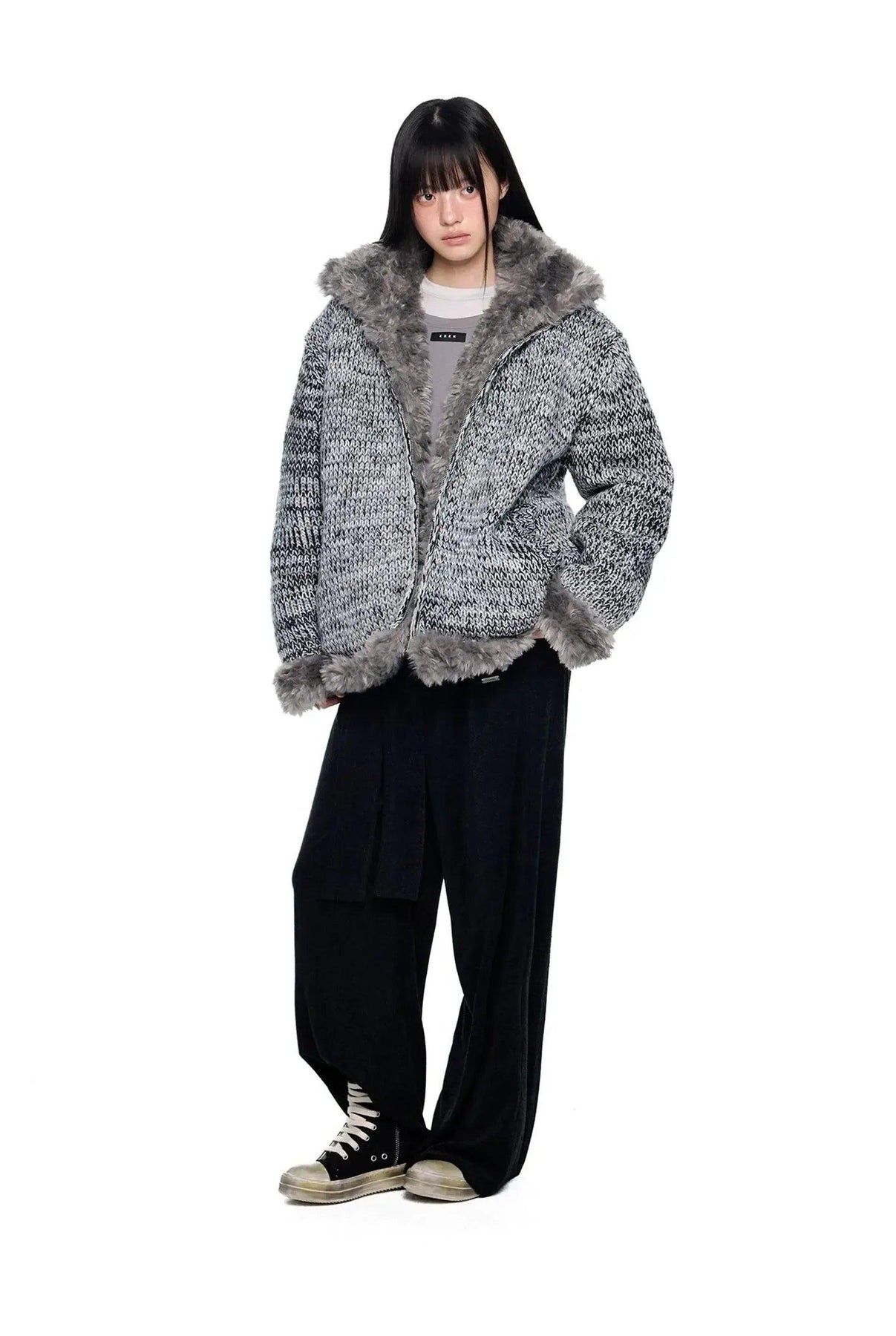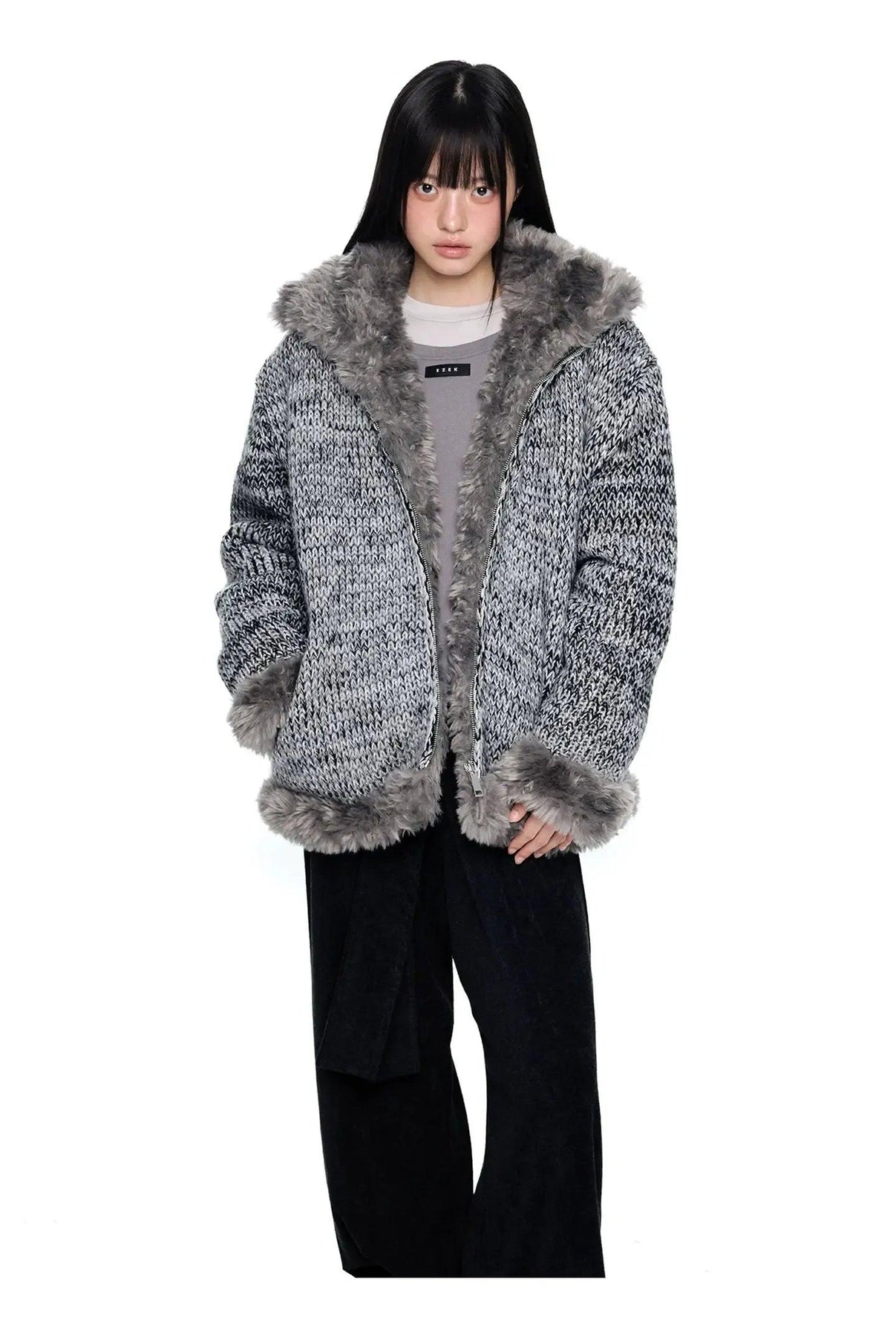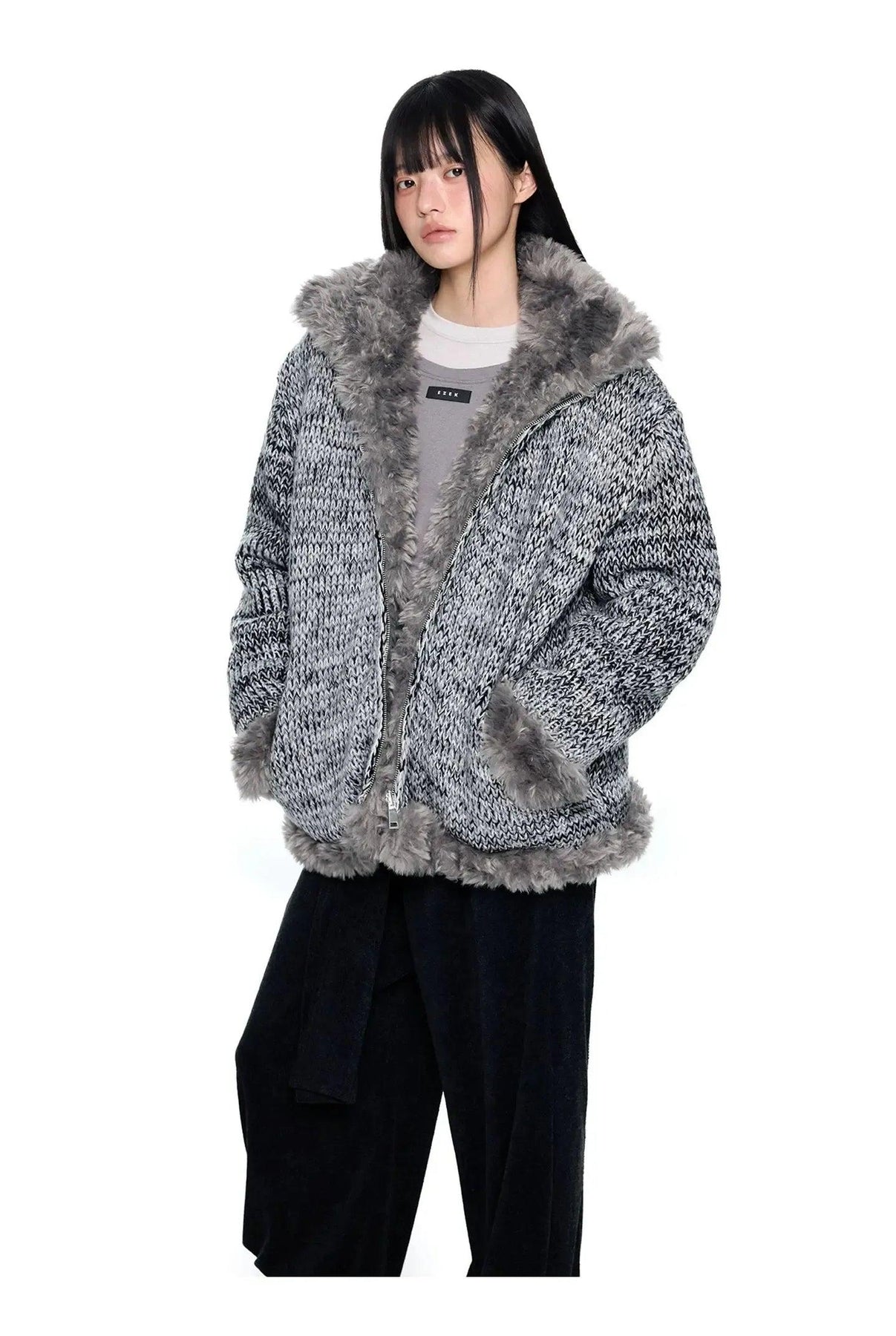 Tom Fur-Lined B&W Knit Jacket